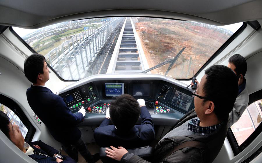 Los técnicos trabajan en afinar los procesos de levitación magnética, a lo largo de la primera línea china de baja velocidad, ubicada en Changsha, capital de la provincia central china de Hunan. [Foto: Xinhua]