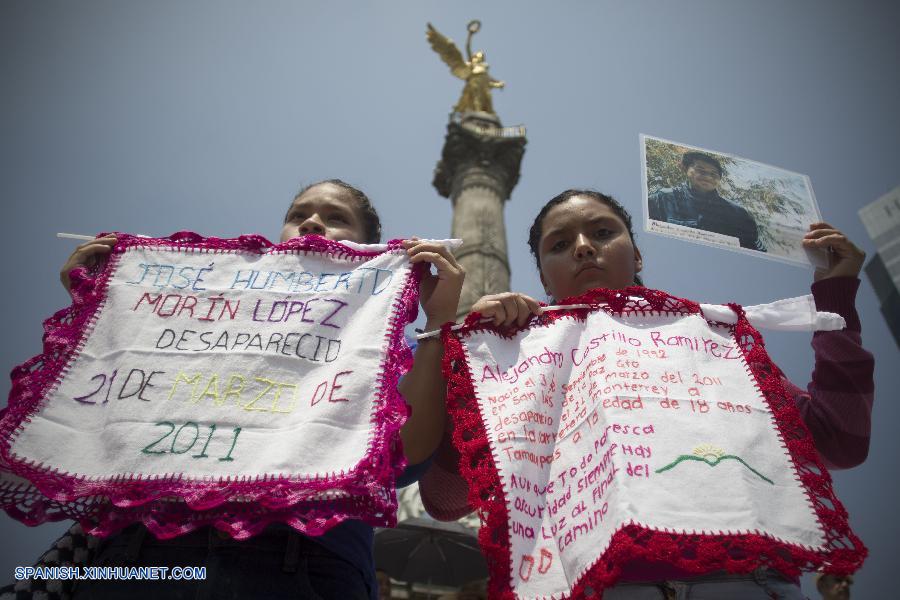 Mujeres participan en una protesta de madres y familiares de víctimas de desaparición forzada provenientes de todo el país, en el marco del Día de las Madres, en el Angel de la Independencia en la Ciudad de México, capital de México, el 10 de mayo de 2016. (Xinhua/Alejandro Ayala)