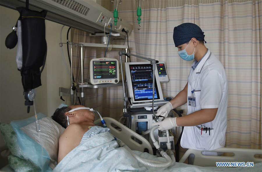 El enfermero Yang Rui durante su trabajo en el Tercer Hospital de Xiangya de la Universidad Central South de Changsha, capital de la provincia de Hunan, el 10 de mayo de 2016. En la actualidad el hospital cuenta con más de 30 enfermeros hombres de un total de 1.000 trabajadores. El 12 de este mes se celebra el Día Internacional de los Enfermeros. [Foto: Xinhua]