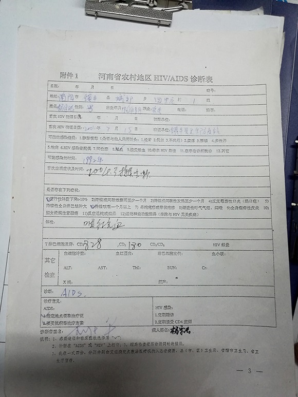 El diagnóstico que confirmaba que Yang era VIH positivo en 2004
