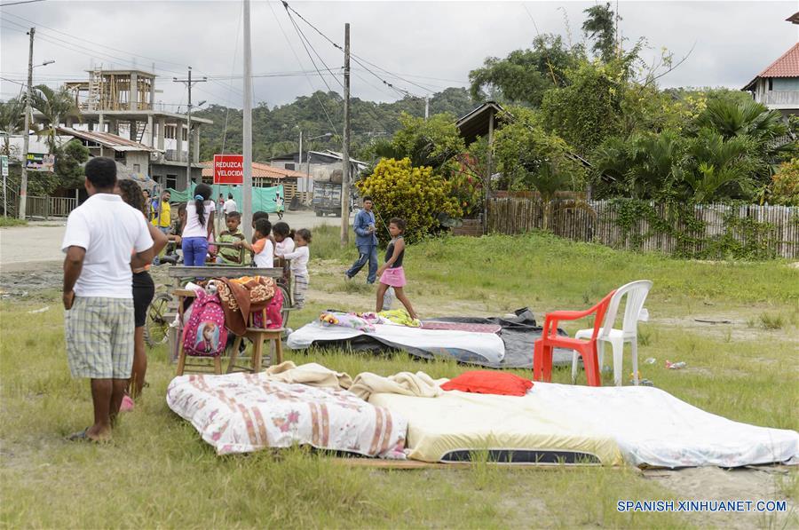 Ciudadanos reaccionan frente a sus oficinas luego del sismo de 6.7 grados en la escala de Richter, en la ciudad de Quito, capital de Ecuador, el 18 de mayo de 2016. Un nuevo sismo de 6.8 grados en la escala Richter sacudió el miércoles a las 11:46 hora local (16:46 GMT) la costa norte de Ecuador, informó el Instituto Geofísico. Previamente, otro fuerte sismo también de magnitud 6.8 grados Richter se registró en la madrugada del miércoles al sur del cantón Muisne en Esmeraldas. Según el Instituto Geofísico se tratan de réplicas del terremoto de 7.8 grados ocurrido en la costa ecuatoriana el 16 de abril, que dejó al menos 661 muertos, miles de damnificados y la destrucción de poblados turísticos. (Xinhua/Santiago Armas)