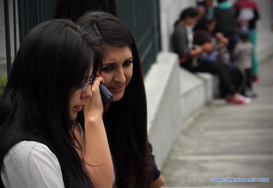 Ciudadanos reaccionan frente a sus oficinas luego del sismo de 6.8 grados en la escala de Richter, en la ciudad de Quito, capital de Ecuador, el 18 de mayo de 2016. Un nuevo sismo de 6.8 grados en la escala Richter sacudió el miércoles a las 11:46 hora local (16:46 GMT) la costa norte de Ecuador, informó el Instituto Geofísico.