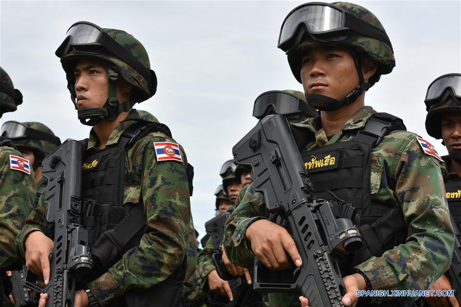 SATTAHIP, mayo 21, 2016 (Xinhua) -- Infantes de marina tailandeses participan en una ceremonia de apertura para un ejercicio militar conjunto, en la Base Naval de Sattahip, provincia de Chon Buri, Tailandia, el 21 de mayo de 2016. Los cuerpos de Marina chinos y tailandeses llevaron a cabo el sábado una ceremonia de apertura de un ejercicio militar conjunto con nombre en código "Blue Strike 2016". (Xinhua/Li Mangmang)