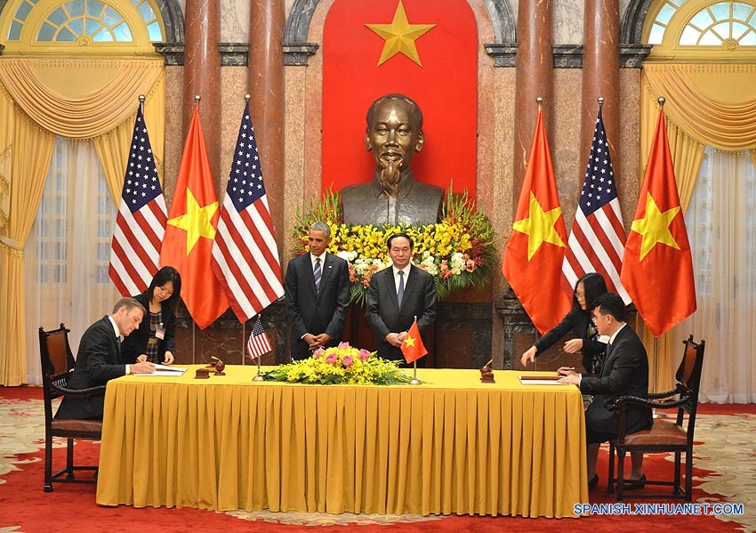 Obama, por su parte, dijo que pedirá al Congreso que adopte el Acuerdo de Asociación Transpacífico (TPP, por sus siglas en inglés) y prometió apoyar a Vietnam mediante ayuda técnica robusta y programas de construcción de capacidad para implementar de manera efectiva y cumplir los estándares elevados del TPP.