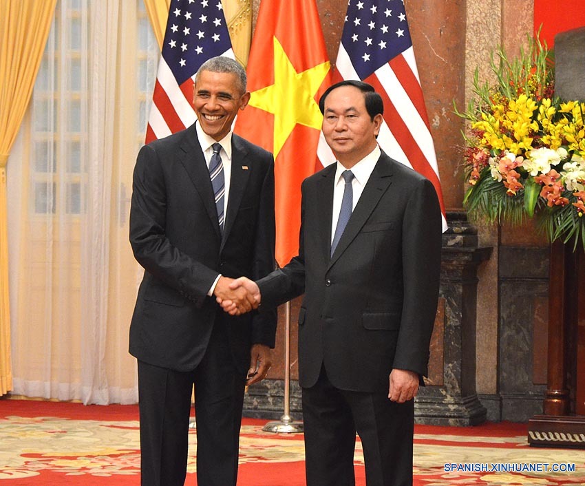 HANOI, 23 may (Xinhua) -- El presidente de Vietnam, Tran Dai Quang, y su homólogo de Estados Unidos, Barack Obama, adoptaron hoy en Hanoi un comunicado conjunto sobre el avance de la asociación integral bilateral.