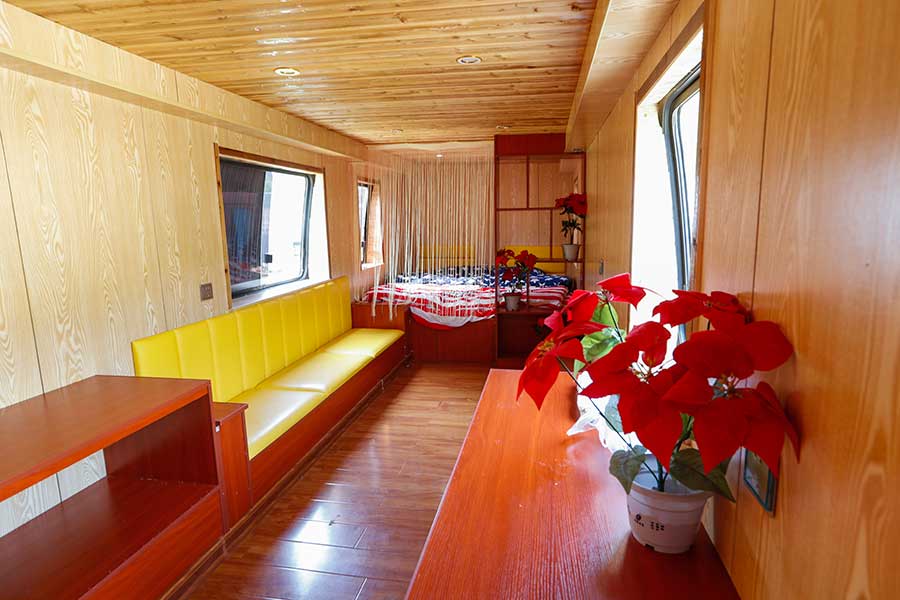 Una casa creada a partir de un autobús en desuso. Las casas son ideales para jóvenes gracias a su precio asequible: alrededor de 200 yuanes por día.