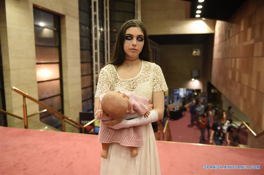 Una mujer disfrazada posa durante la edición 2016 de "Montevideo Comics", en el auditorio Nacional del Sodre, en Montevideo, capital de Uruguay, el 29 de mayo de 2016. De acuerdo con información de la prensa local, la convención de historietas y animación, que se encuentra en su edición número 14, cuenta con conferencias con invitados internacionales, concursos de comics y de cosplay. (Xinhua/Nicolás Celaya)