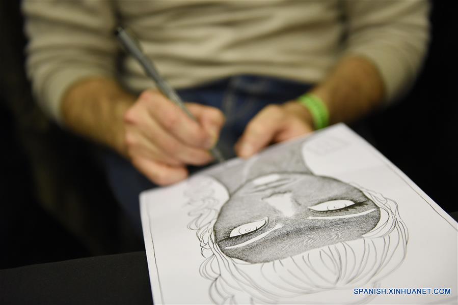 Una persona realiza un dibujo durante la edición 2016 de "Montevideo Comics", en el auditorio Nacional del Sodre, en Montevideo, capital de Uruguay, el 29 de mayo de 2016. De acuerdo con información de la prensa local, la convención de historietas y animación, que se encuentra en su edición número 14, cuenta con conferencias con invitados internacionales, concursos de comics y de cosplay. (Xinhua/Nicolás Celaya)