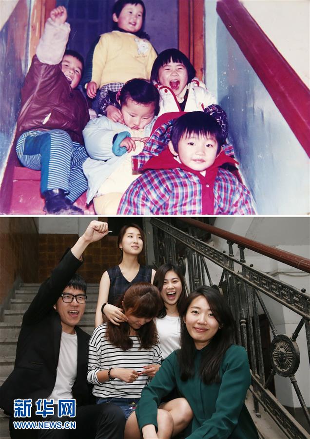 Tang Wenlei y sus amigos en una misma foto tomada conla misma pose que otra de 1992. (Xinhua/Ding Ding)