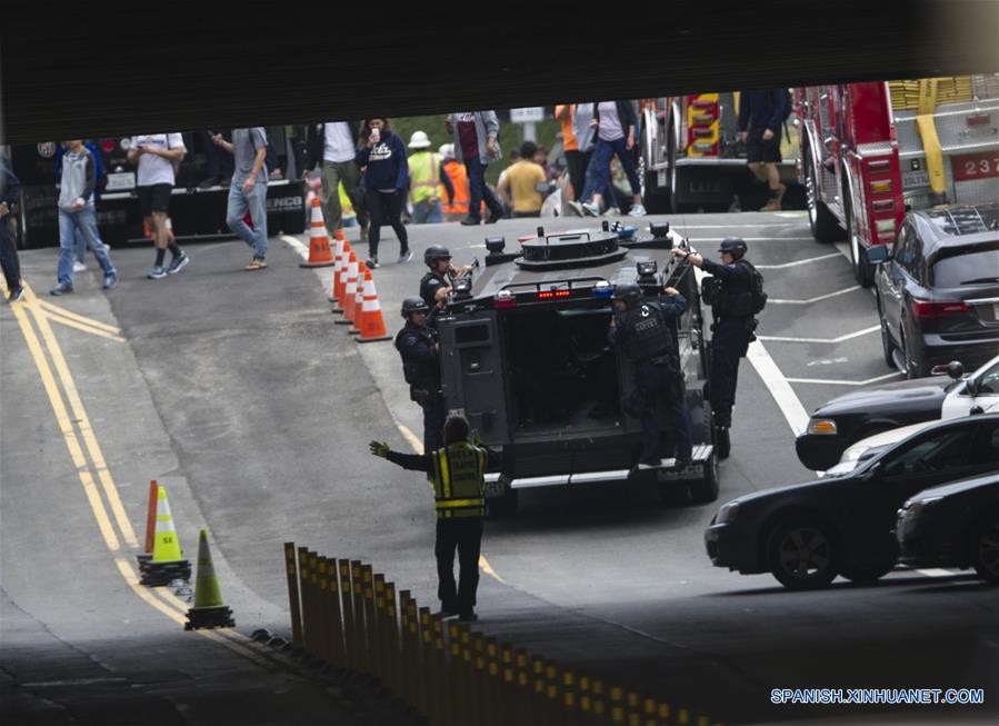 Policías montan un vehículo en el campus de la Universidad de California Los Angeles, en Los Angeles, estado de California, Estados Unidos de América, el 1 de junio de 2016. El jefe del Departamento de Policía de Los Angeles, Charlie Beck, confirmó que el responsable del incidente ocurrido el miércoles por la ma?ana en el campus de la Universidad de California Los Angeles (UCLA) se suicidó después de matar a una persona y que el campus está seguro. (Xinhua/Yang Lei)