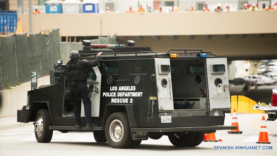 Un oficial de policía monta un vehículo en el campus de la Universidad de California Los Angeles, en Los Angeles, estado de California, Estados Unidos de América, el 1 de junio de 2016. El jefe del Departamento de Policía de Los Angeles, Charlie Beck, confirmó que el responsable del incidente ocurrido el miércoles por la ma?ana en el campus de la Universidad de California Los Angeles (UCLA) se suicidó después de matar a una persona y que el campus está seguro. (Xinhua/Yang Lei)