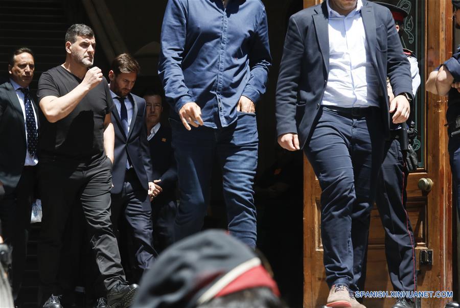 El jugador del club espa?ol de fútbol Barcelona, Leo Messi, se defendió hoy durante la comparecencia oral en la Audiencia de Barcelona (noreste) en el juicio que se le sigue por presunto fraude fiscal de 4,1 millones de euros (unos 4,58 millones de dólares).(Xinhua/Pau Barrena)