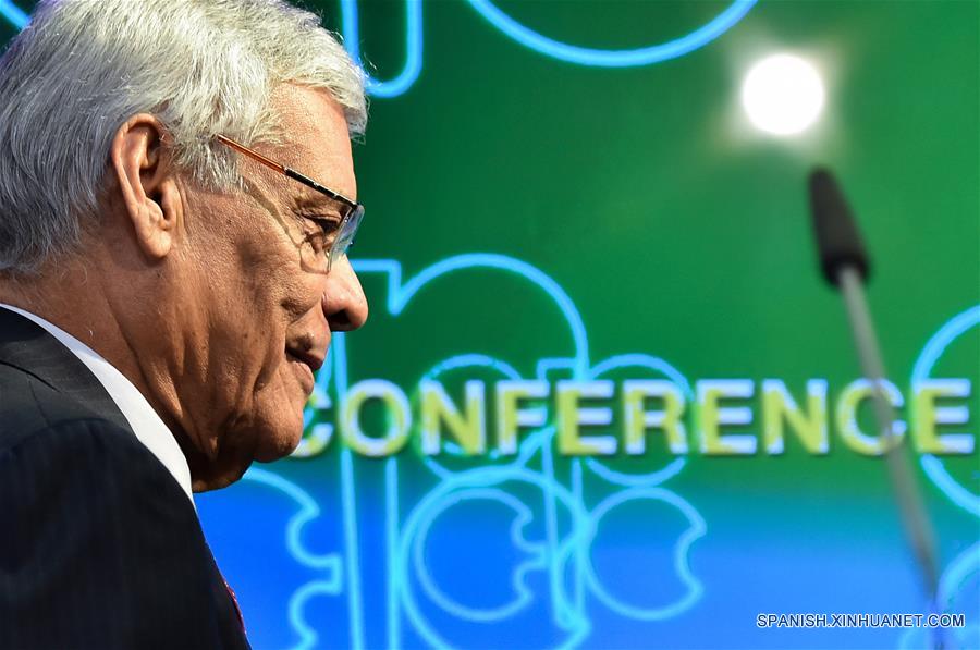 El secretario general de la Organización de Países Exportadores de Petróleo (OPEP), Abdalla Salem el-Badri, se retira al finalizar una conferencia de prensa, en Viena, capital de Austria, el 2 de junio de 2016. Una vez más, la Organización de Países Exportadores de Petróleo OPEP no logró llegar a ningún acuerdo para establecer un tope a la producción petrolera después de la reunión realizada el jueves en Viena, dijo un funcionario de OPEP. (Xinhua/Qian Yi)