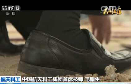 La suela del zapato derecho de Mao Lasheng es más delgada que la otra debido al continuo roce con el suelo. [Foto/CCTV]