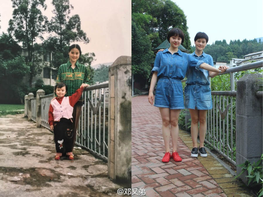 Dengyoudi con su madre. [Foto/Sina Weibo]
