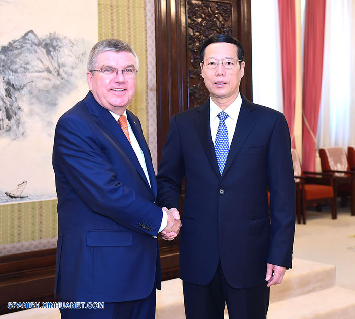 En el encuentro llevado a cabo en el complejo de liderazgo chino Zhongnanhai en el centro de Beijing, Zhang agradeció a Bach y al COI por aprobar a Beijing y a Zhangjiakou como sedes de los juegos de 2022.