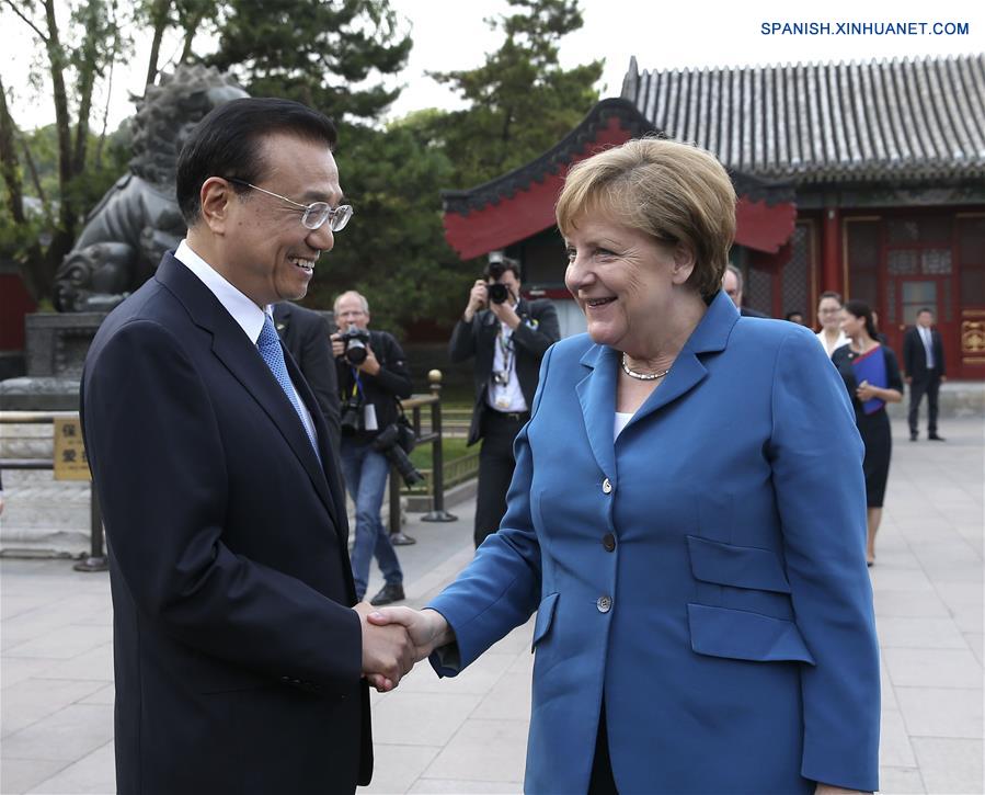 El primer ministro de China, Li Keqiang (i), se reúne con la canciller alemana, Angela Merkel, durante su visita a China para la cuarta ronda de consultas intergubernamentales China-Alemania, en Beijing, capital de China, el 12 de junio de 2016. (Xinhua/Pang Xinglei)