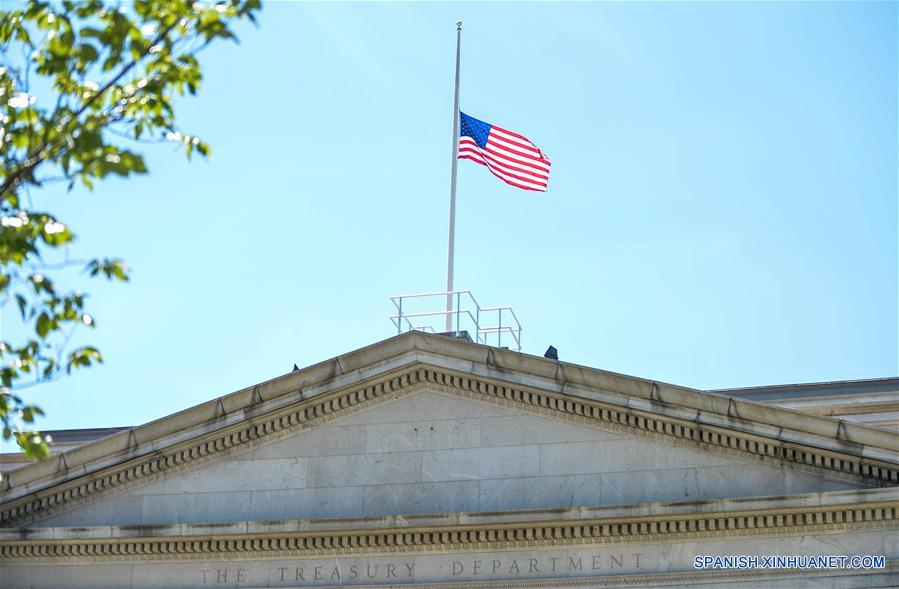 Banderas nacionales estadounidenses ondean a media asta en La Suprema Corte de Nueva York (4)
