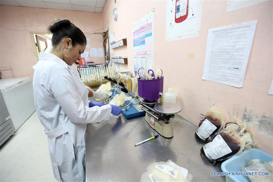 TEGUCIGALPA, junio 14, 2016 (Xinhua) -- Una técnica analiza una muestra de sangre para saber su compatibilidad en transfusiones para los pacientes, durante una campa?a llevada a cabo en el marco del Día Mundial del Donante de Sangre, en el Hospital Escuela Universitario, en la ciudad de Tegucigalpa, Honduras, el 14 de junio de 2016. El Día Mundial del Donante de Sangre se celebra cada a?o en todo el mundo el 14 de junio, y en 2016 el tema de la campa?a es "La sangre nos conecta a todos", para agradecer a los donantes y destacar la conexión existente entre ellos y los pacientes. (Xinhua/Rafael Ochoa)