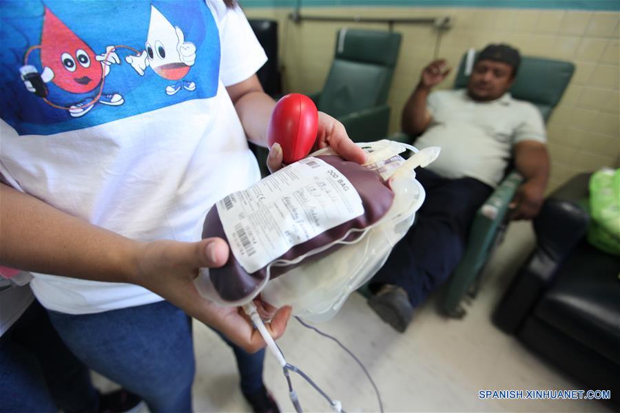 TEGUCIGALPA, junio 14, 2016 (Xinhua) -- Una persona muestra una bolsa con sangre durante una campa?a llevada a cabo en el marco del Día Mundial del Donante de Sangre, en el Hospital Escuela Universitario, en la ciudad de Tegucigalpa, Honduras, el 14 de junio de 2016. El Día Mundial del Donante de Sangre se celebra cada a?o en todo el mundo el 14 de junio, y en 2016 el tema de la campa?a es "La sangre nos conecta a todos", para agradecer a los donantes y destacar la conexión existente entre ellos y los pacientes. (Xinhua/Rafael Ochoa)