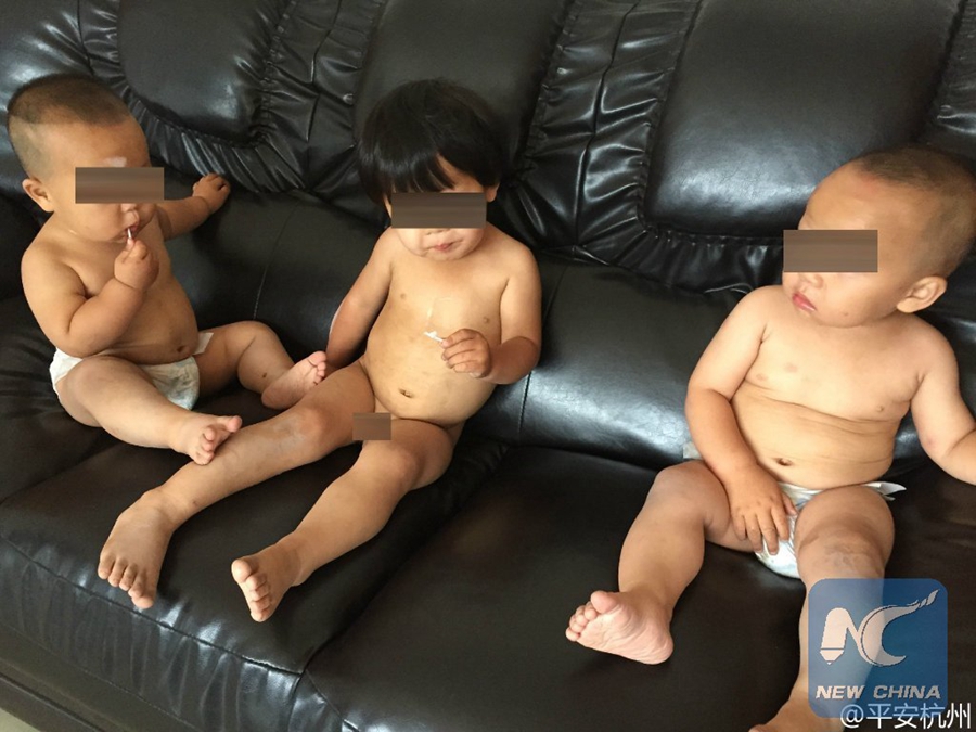 Tres bebés chinos se aventuran por su cuenta a caminar el barrio. [Foto Web]