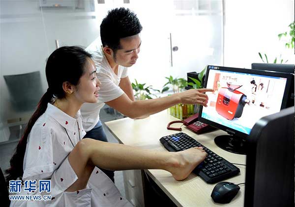 Yang Pei (a la izquierda) discute sobre nueva tecnología con su compa?ero Guo Yunbao. [Foto: Xinhua]