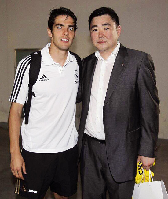 Wu Youwen, CEO del Real Madrid en Asia-Pacífico, junto al futbolista brasile?o Kaká. (Foto: Cortesía)