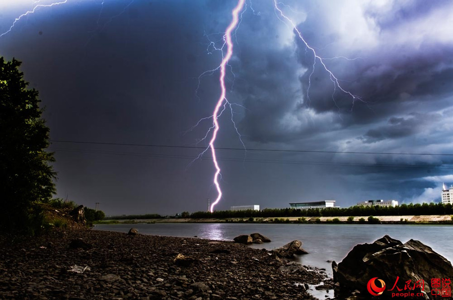 La foto muestra el momento que un potente rayo ilumina el complejo monta?oso Khingan, ubicado en el noreste de China. (Foto: people.cn)
