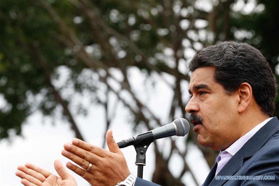 CARACAS, junio 22, 2016 (Xinhua) -- El presidente de Venezuela, Nicolás Maduro, pronuncia un discurso frente a trabajadores de la empresa estatal Petróleos de Venezuela (PDVSA) que participan durante una marcha en apoyo al Gobierno venezolano, en el Palacio de Miraflores, en Caracas, Venezuela, el 22 de junio de 2016. El presidente de Venezuela, Nicolás Maduro, anunció el miércoles que Venezuela aumentará su producción petrolera de acuerdo con las cuotas asignadas por la Organización de Países Exportadores de Petróleo (OPEP). Durante un acto público desde el Palacio de Miraflores, en Caracas, donde el mandatario venezolano se dirigió a los trabajadores de PDVSA, se?aló que durante el segundo semestre de este a?o la empresa debe aumentar su producción. (Xinhua/Prensa Presidencial/AVN)