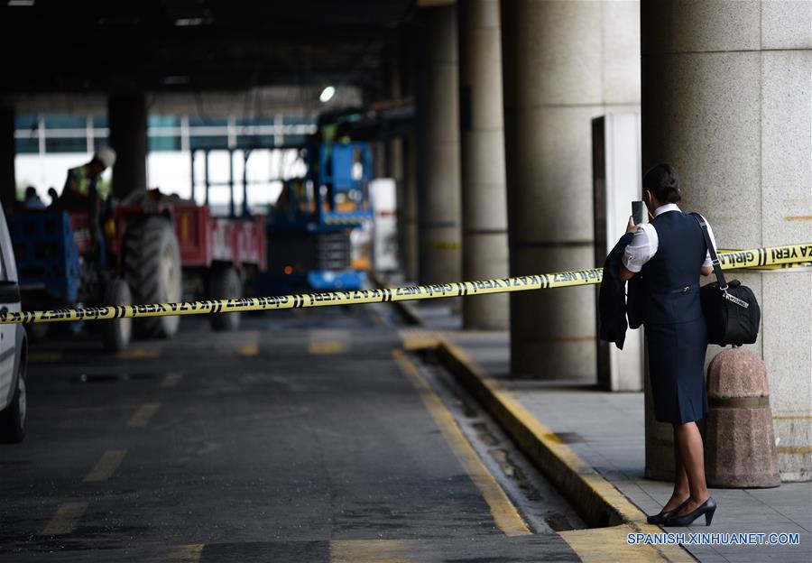Trabajadores inspeccionan los da?os a la entrada del Aeropuerto Internacional Ataturk, en Estambul, Turquía, el 29 de junio de 2016. Turquía anunció el miércoles un día de luto nacional por las 41 vidas perdidas anoche durante los letales ataques con bomba perpetrados en el Aeropuerto Ataturk de Estambul, uno de los más transitados en Europa. En todo el país se izaron las banderas a media asta por los muertos, entre los cuales hay 12 extranjeros de Arabia Saudí, Irak, Túnez, Irán, Ucrania, Jordania y Uzbekistán. (Xinhua/Depo Photos/ZUMAPRESS)