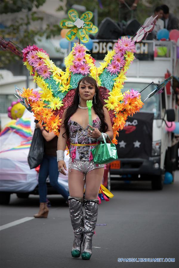 Una persona participa durante una marcha de la comunidad Lésbico, Gay, Bisexual, Transexual e Intersexual (LGBTI), en el marco de la celebración del Día Internacional del Orgullo LGBTI, en Quito, Ecuador, el 2 de julio de 2016. De acuerdo con información de la prensa local, personas de todas las edades participaron en la marcha con el lema: "Somos diversidad, somos amistad", en apoyo a la igualdad social y de derechos de esta comunidad. (Xinhua/Santiago Armas)