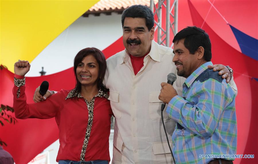 El presidente venezolano Nicolás Maduro (c) encabeza el acto público para conmemorar el vigésimo tercer aniversario de la Misión Robinson en la Plaza Bolívar de Caracas, Venezuela, el 2 de julio de 2016. De acuerdo con la prensa local, la Misión Robinson es un programa social para alfabetizar a personas excluidas de la educación formal y capacitarlas en diversos oficios productivos. Más de 70,000 alfabetizados se han graduado de la educación primaria y continuarán con un bachillerato productivo. (Xinhua/AVN)