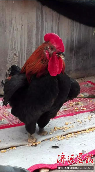 Cheng coloca parches bajo las patas del gallo para que esté más cómodo. [Foto/Jiyuan Morning News]