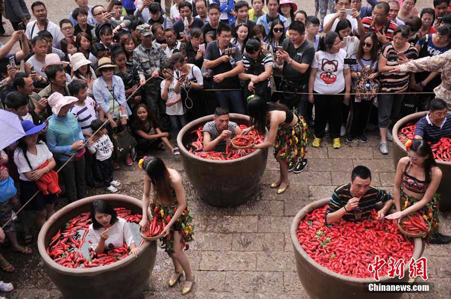 El 2 de julio se celebró una competición de comer chiles en Lijiang, provincia de Yunnan, el 2 de julio de 2016.
