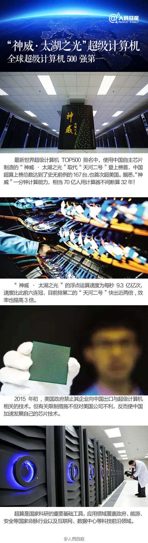 Capaz de realizar 93 billones de cálculos por segundo, la Sunway TaihuLight desplazó a la también china Tianhe-2 del puesto número uno en la lista de las 500 supercomputadoras más poderosas del mundo.