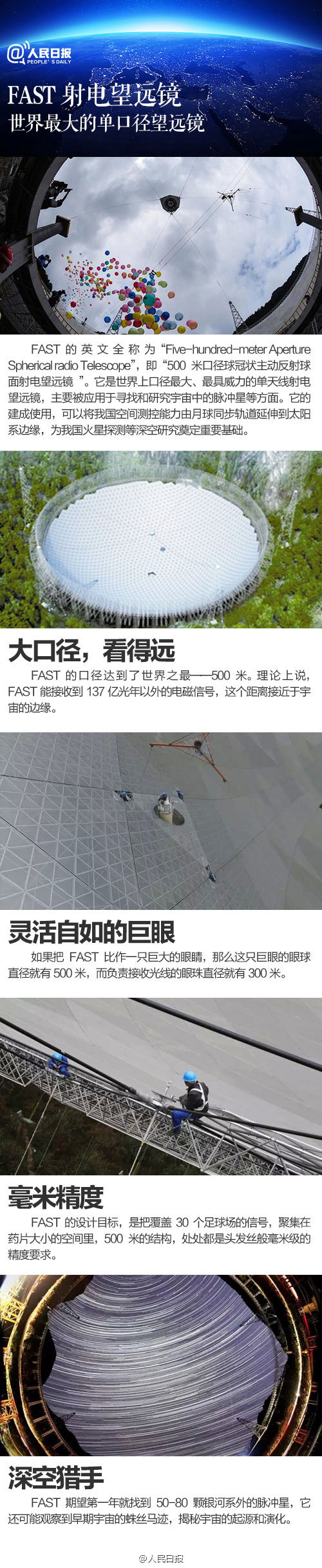 Beijing,06/07/2016 (El Pueblo en Línea) - Después del colapso de una cueva kárstica en la provincia de Guizhou, hace 45 millones de a?os se formó un gran agujero que ahora el hogar del mayor radiotelescopio del mundo.