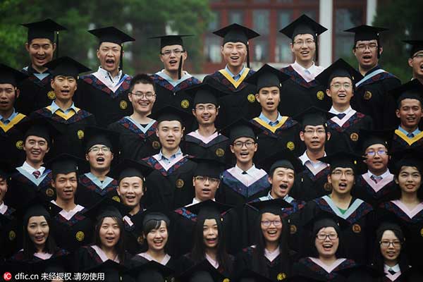 An Yongrui (al centro) posa para una foto con otros graduados de la Universidad de Pekín. [Foto: IC]