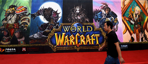 Un hombre pasa por un cartel de la película de Warcraft en Luoyang, provincia de Henan, el 14 de junio de 2016. [Foto a China Daily]