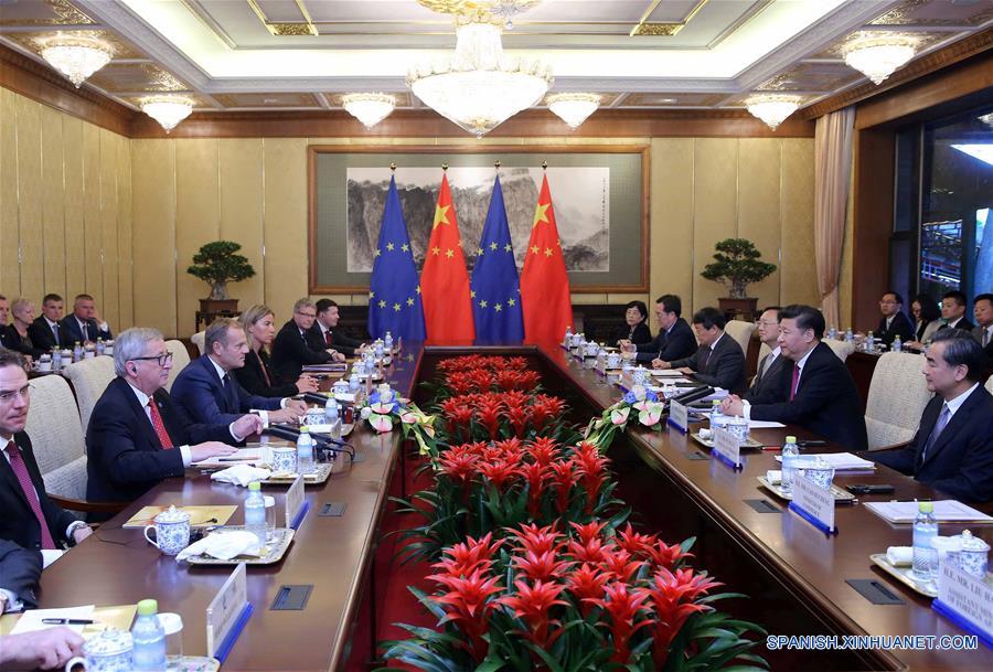 El presidente hizo las declaraciones esta tarde mientras se reunía con el presidente del Consejo Europeo, Donald Tusk, y con el presidente de la Comisión Europea, Jean-Claude Juncker, en el centro de Beijing.