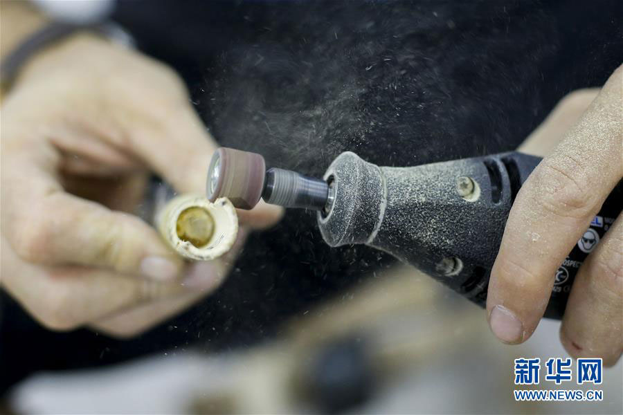 David Wang muestra cómo se fabrica una bicicleta de bambú en su estudio. [Foto: Xinhua]