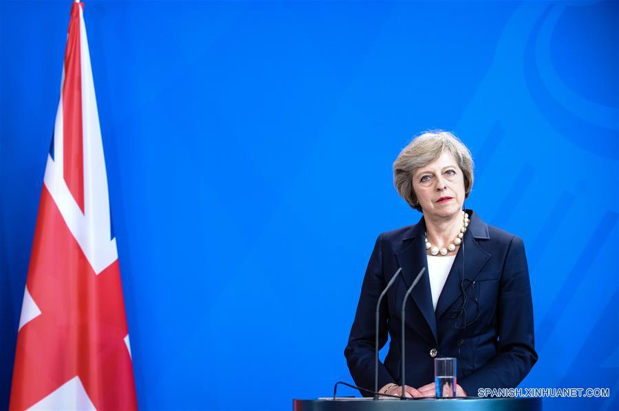 La primera ministra de Reino Unido, Theresa May, participa en una conferencia de prensa después de su reunión con la canciller de Alemania, Angela Merkel, en la sede de la Cancillería en Berlín, Alemania, el 20 de julio de 2016. De acuerdo con información de la prensa local, Reino Unido mantendrá relaciones económicas cercanas con Alemania a pesar de su intención de abandonar la Unión Europea (UE), dijo el miércoles la primera ministra Theresa May durante su visita a Alemania. (Xinhua/Guo Yang)