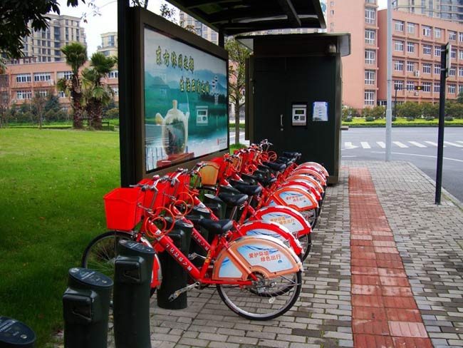 El servicio de alquiler de bicicletas de Hangzhou, iniciado originalmente en mayo del 2008, ofrece el uso gratuito durante la primera hora. Entre la primera y la segunda hora, la cuota de alquiler es de 1 yuan por hora, que se incrementa a 2 yuanes a partir de la tercera hora. Durante la cuarta hora y en adelante, se abonarán 3 yuanes por hora.