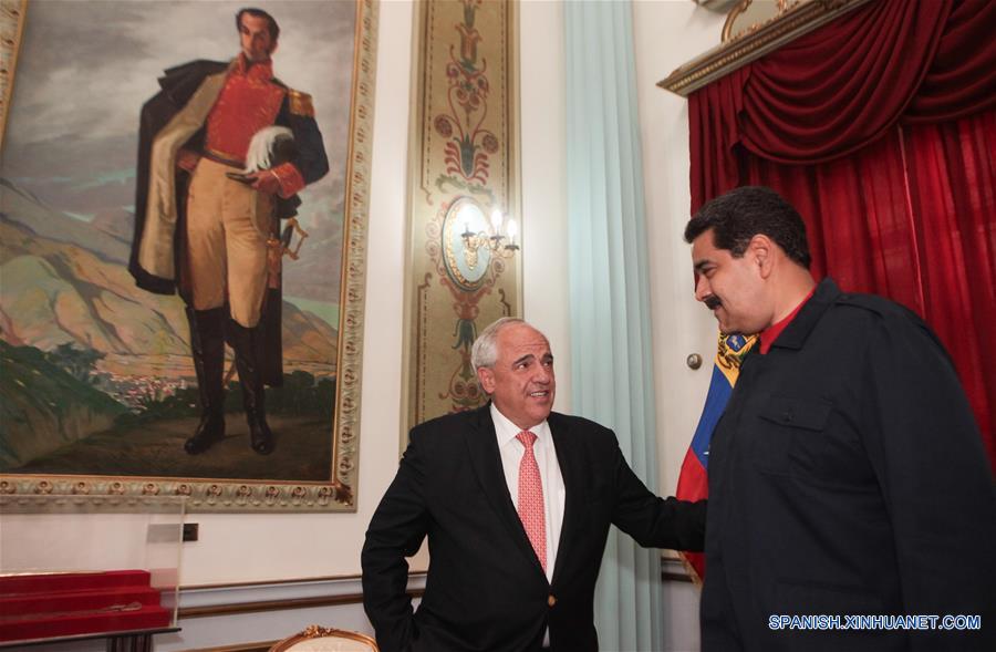 CARACAS, julio 21, 2016 (Xinhua) -- Imagen cedida por la Presidencia de Venezuela, del presidente venezolano, Nicolás Maduro (d), conversando con el secretario general de la Unión de Naciones Suramericanas (Unasur), Ernesto Samper (i), durante su reunión en el Palacio de Miraflores, en Caracas, Venezuela, el 21 de julio de 2016. Nicolás Maduro se reunió el jueves en el Palacio de Miraflores con el secretario general de la Unasur, Ernesto Samper, y la comisión de mediadres conformada por el ex jefe del gobierno espa?ol, José Luis Rodríguez Zapatero, y por los expresidentes Martín Torrijos de Panamá y Leonel Fernández de República Dominicana. La actividad se lleva a cabo para continuar conversaciones sobre el proceso de diálogo entre el gobierno y la oposición en Venezuela. (Xinhua/Presidencia de Venezuela)