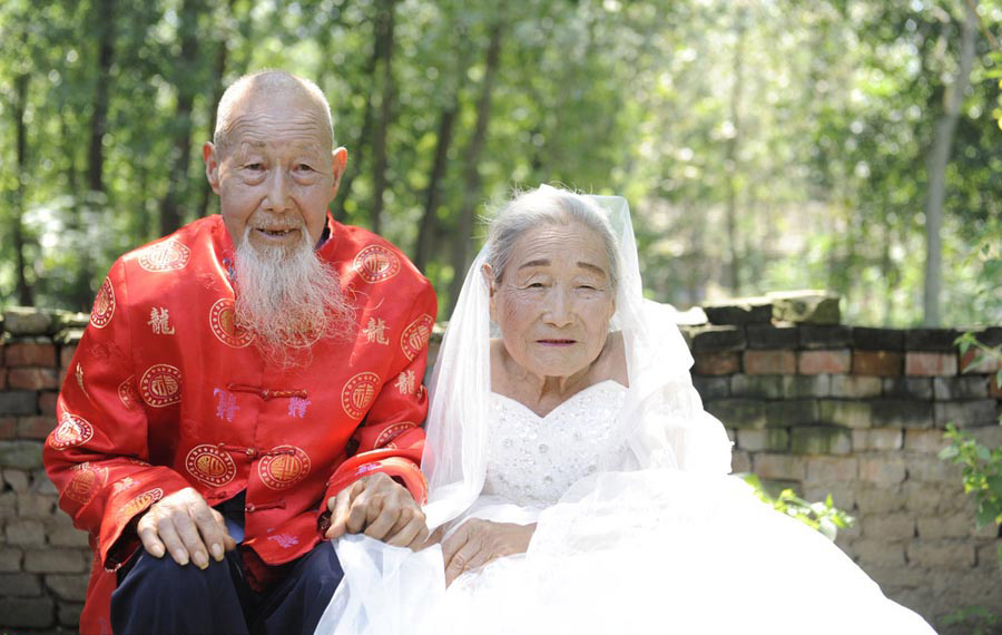 Hefei,27/07/2016 (El Pueblo en Línea) -Song Qinglin, de 102 a?os y su esposa Song Lishi, de 99 a?os, posan vestidos de novios para celebrar sus 80 a?os de matrimonio en la aldea Songzhai de Sangying, en el condado Taihe de Fuyang, provincia de Anhui, el 23 de julio de 2016.