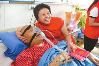 Chongqing,29/07/2016 (El Pueblo en Línea) - El 27 de julio, Yang Xiaohua y su prometido Yang Ping, postrado en una cama de hospital, recibieron su certificado de matrimonio emitido por el gobierno de Chongqing. Ellos habían estado esperando ese momento durante mucho tiempo.