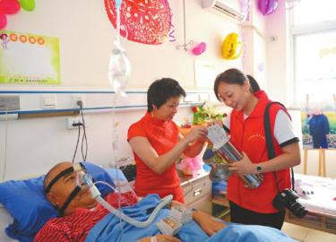 En los 16 meses después de su diagnóstico, Yang Ping recibió tratamiento en diferentes hospitales, donde lo clasificaron como enfermo crítico. A lo largo de todo el proceso, Yang Xiaohua se quedó con él y lo cuidó. Ella le prepara tres comidas al día, lo alimenta y lo ayuda a ba?arse.