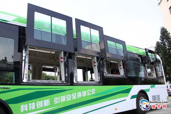 Guangdong,01/08/2016 (El Pueblo en Línea) - Un autobús que ofrece un nuevo sistema de seguridad debutó en la provincia de Guangdong, sur de China el viernes para que sea más fácil para los pasajeros para escapar en caso de emergencia.