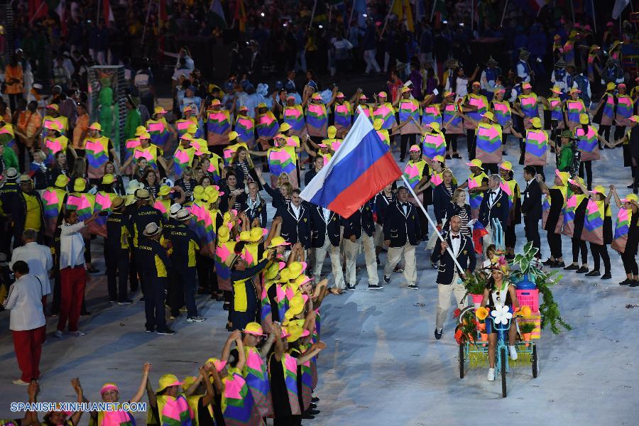RIO DE JANEIRO, 5 ago (Xinhua) -- La delegación rusa desfiló este viernes en la ceremonia inaugural de los Juegos Olímpicos de Río de Janeiro 2016 después que el Comité Olímpico Internacional (COI) diera luz verde a la participación de más de 270 deportistas de ese país en la cita estival.