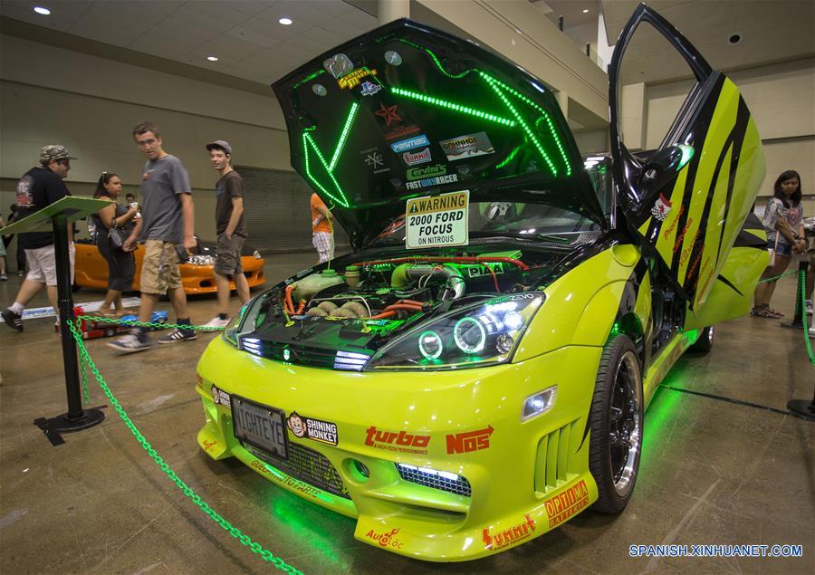 TORONTO, agosto 7, 2016 (Xinhua) -- Visitantes observan un vehículo modificado durante el "Importfest 2016", en el Centro de Convenciones Metro Toronto, en Toronto, Canadá, el 7 de agosto de 2016. El evento anual de un día, que es la más grande exposición de automóviles modificados, se llevó a cabo el domingo mostrando los mejores vehículos modificados de Canadá y Estados Unidos de América. (Xinhua/Zou Zheng)