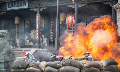 Los actores caen al suelo tras una explosión en una escena de la película Sun Yat-sen. Foto: CFP